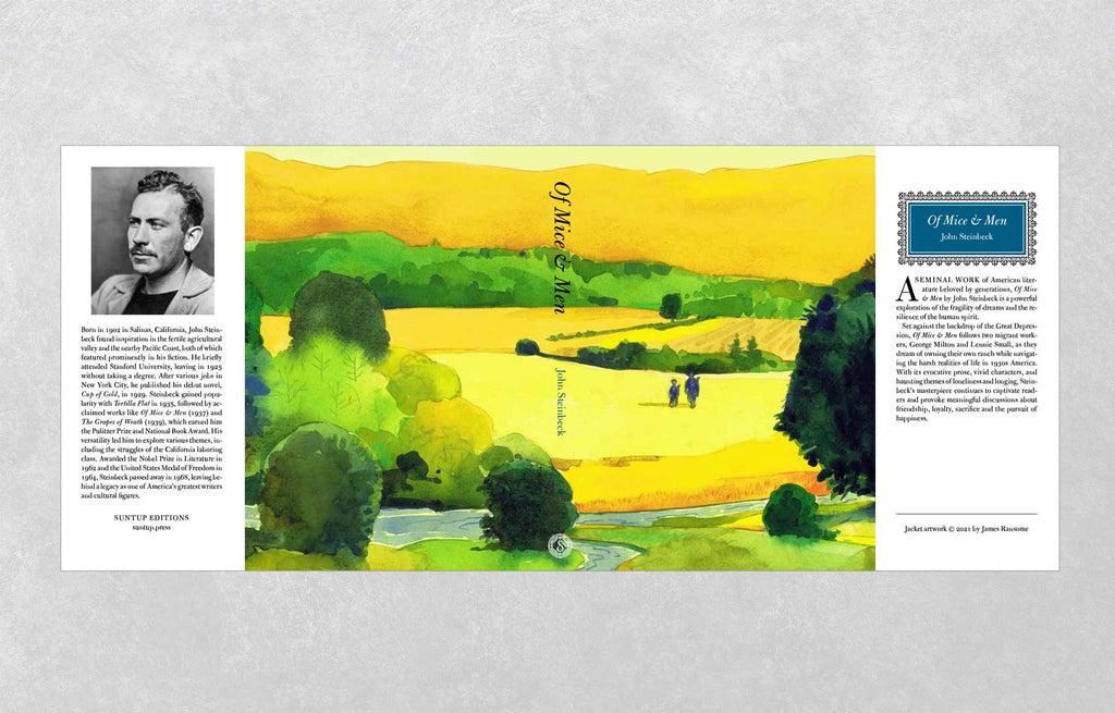 Dust jacket from the Artist edition of Of Mice and Men by John Steinbeck. The jacket ships rolled in a tube.