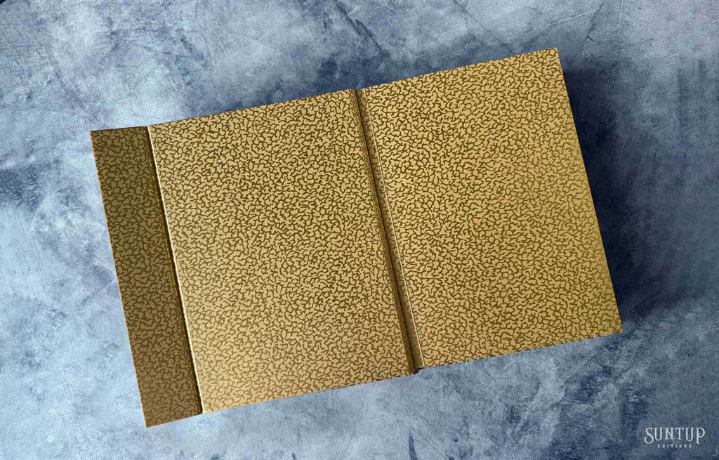- Housed in a handmade slipcase covered in custom made decorative papers, also used to cover the edition.