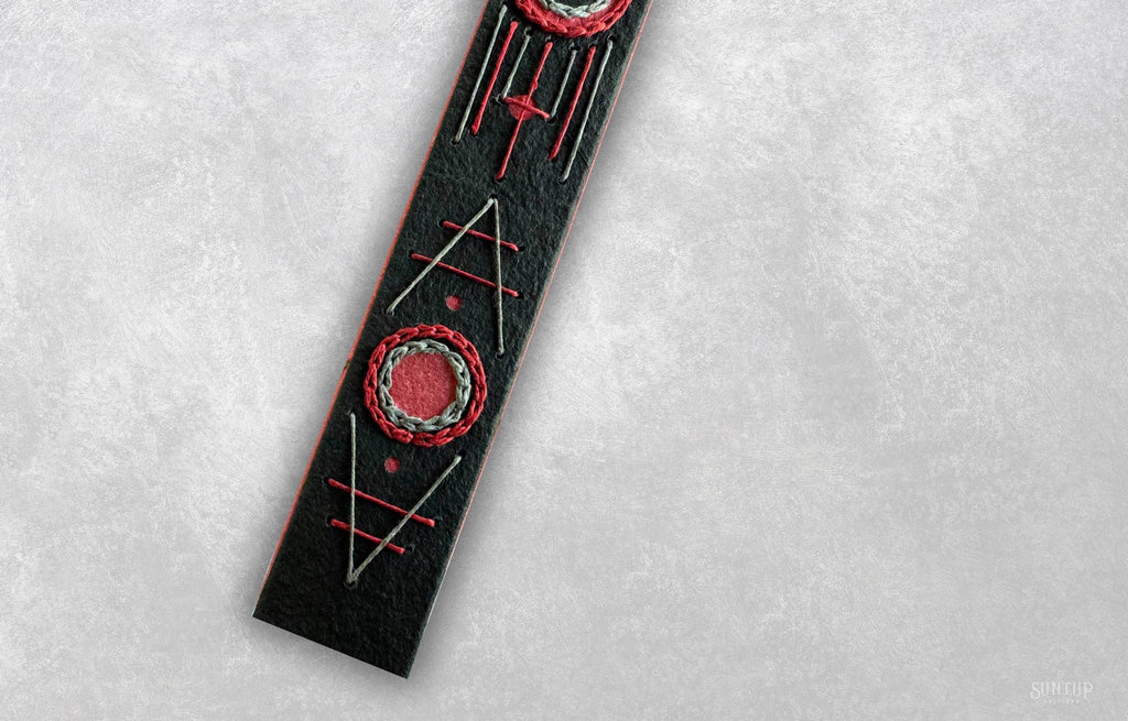 - Spine and covers feature handsewn stitching in two colors with hand-punched circular detailing on the spine.